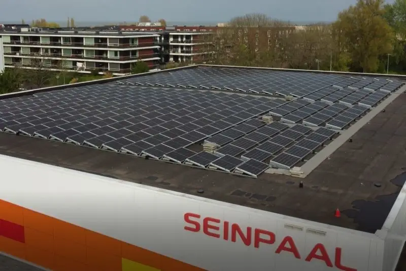 Zo goed als energieneutraal, dat was het doel van sporthal Seinpaal in Volendam. Smit rekende voor dat 358 panelen de klus zouden kunnen klaren en plaatste deze op het dak van de sportal. Een machtig gezicht!